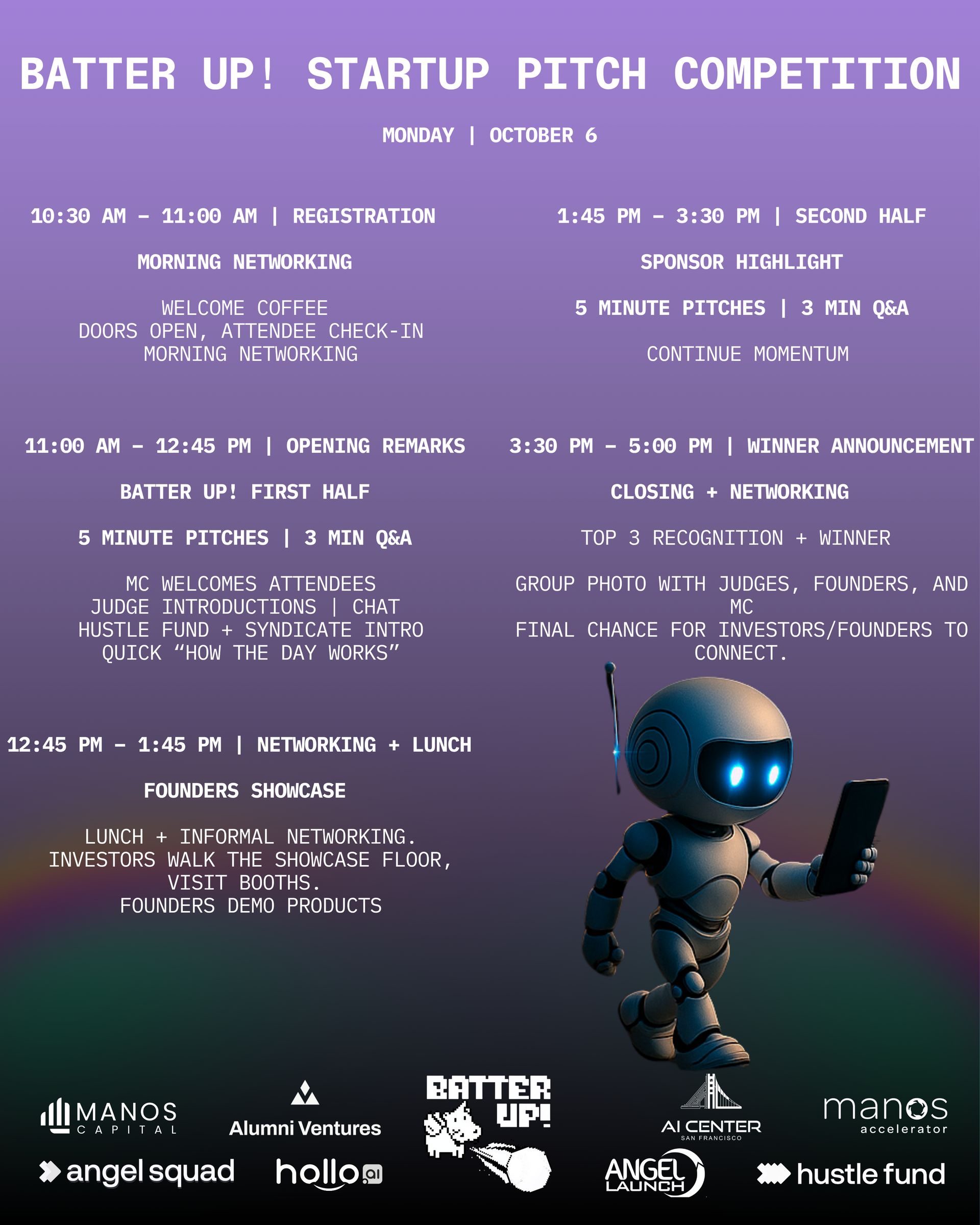 With 700+ pre-registrations across all platforms, Batter Up! Startup Pitch Competition stands as a top SF Tech Week must attend event to kickoff an amazing week of events across the bay area. If you’re interested in pitching last minute, being distributed & highlighted across our 128k+ subscribers, snag a “Startup Innovator Pitch.”
